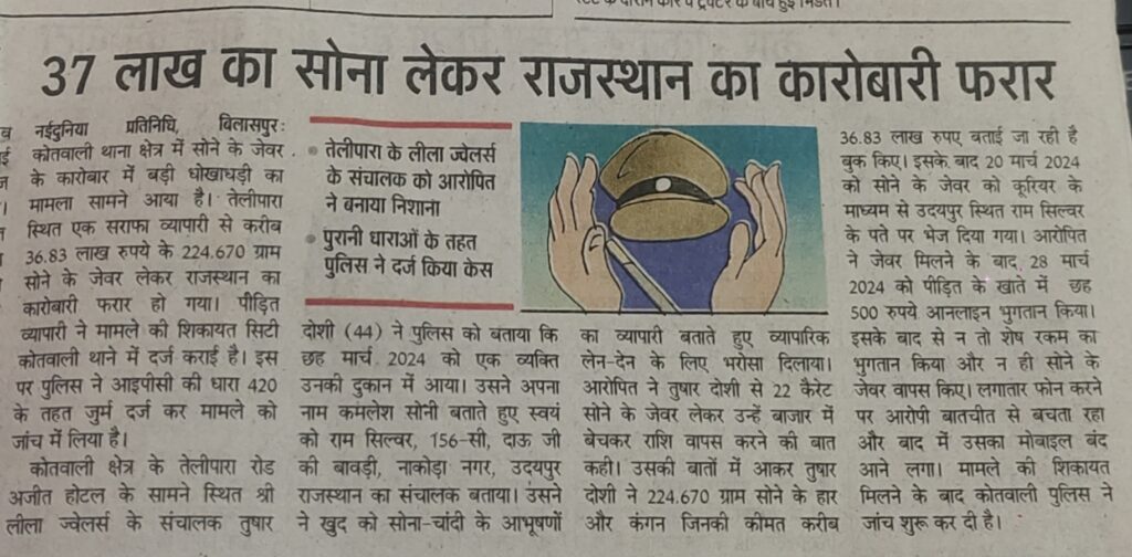 नांदेड | Khabar21.in ब्यूरोमहाराष्ट्र के नांदेड जिले में सोने के कारोबार से जुड़ी एक बड़ी धोखाधड़ी का मामला सामने आया […]